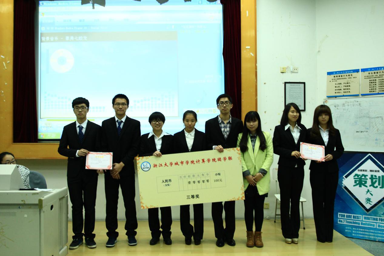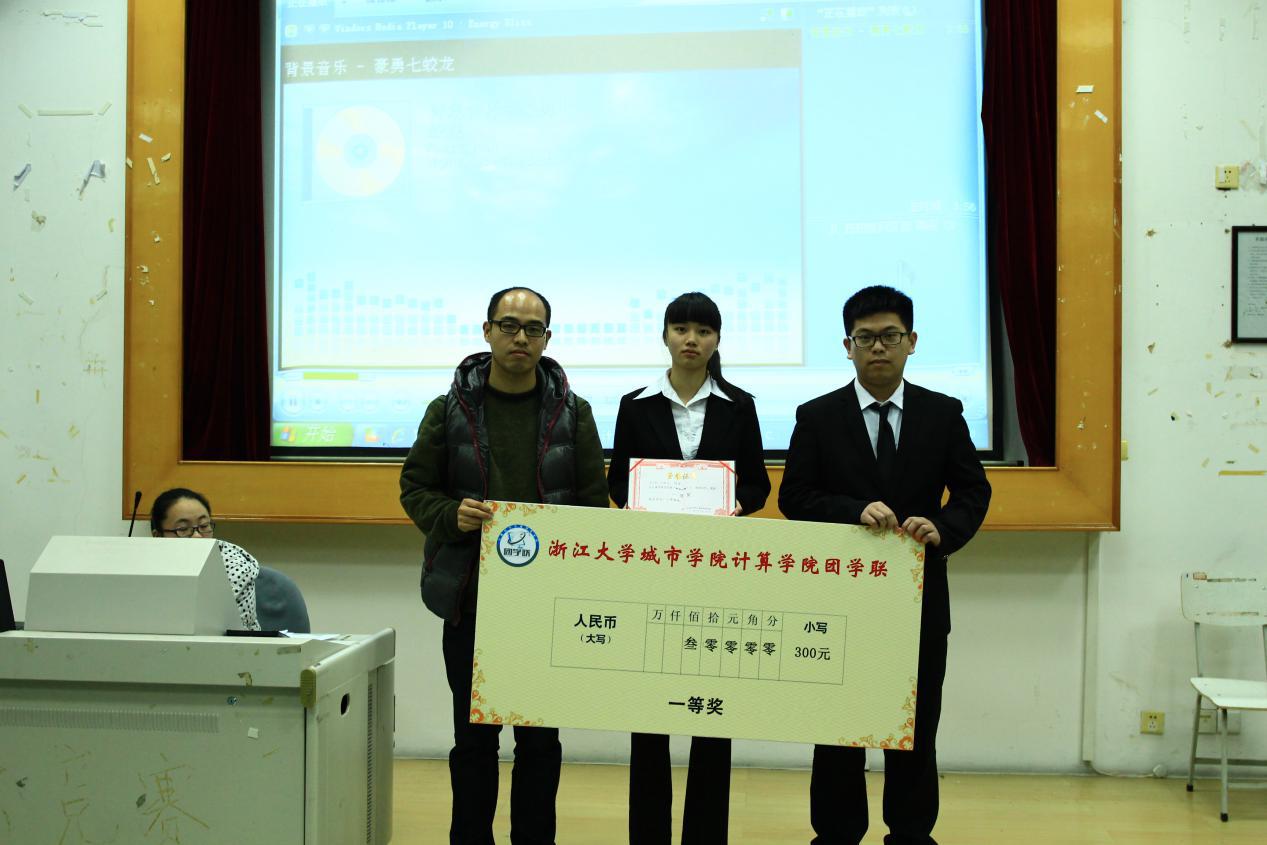 在两个半小时唇枪舌剑的角逐下,PC部的许文凯、冯金玺夺得了魁首,文艺部的李鸣轩、沈灵恩、俞一琰和组织部的吴成洋、单君妍、吴容分列二等奖,公关部的姚静逸、方蕾,办公室的张恺特、陈碧乾、丁佳、康卜文和新闻部的叶胤妤、冯静晗、周斌位列三等奖,分别由团学联指导老师徐晓波老师、团委副书记顾熙昊同学和团学联主席林晶萍同学为其颁奖。在此,恭贺获奖小组,并希望这些优秀的策划能在来年付诸于实际的执行。 通讯员:凌云帆 拍 摄:徐 可/曹程懿 计算分院学工办(徐成晓) 2014年12月28日 |